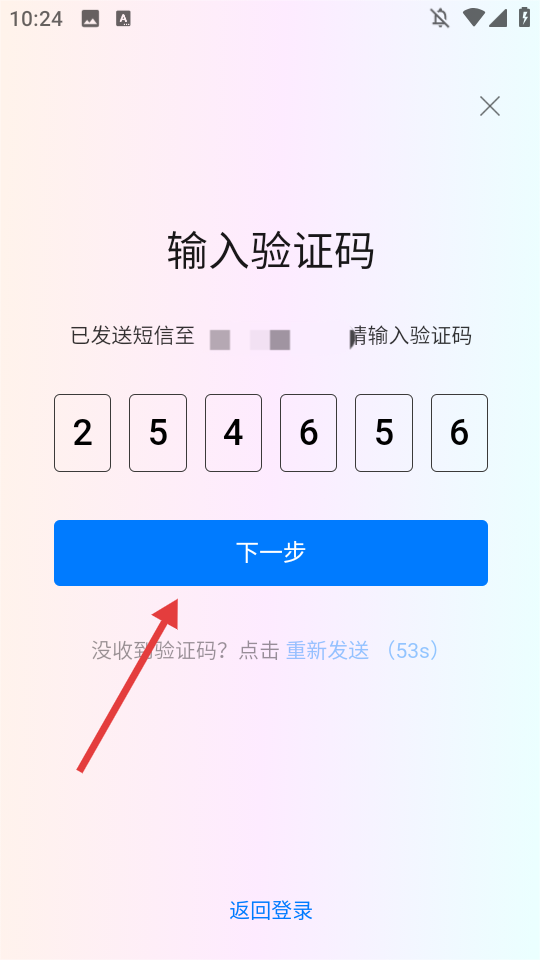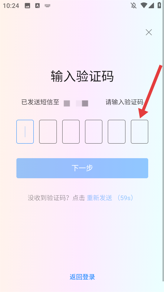 3、收到短信验证码后,在“输入验证码”页面依次填入对应数字。