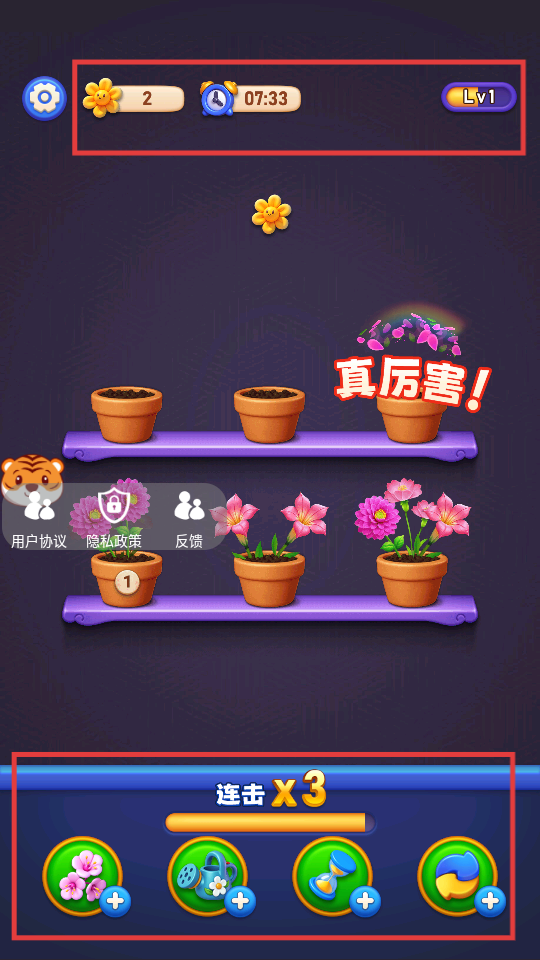 3、连续消除花灵提升【连击-x3】,可增加得分和获得更多奖励。