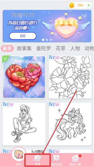 1、在主界面点【发现】按钮,切换到发现页面,就能找到拼图类的玩法选项啦。