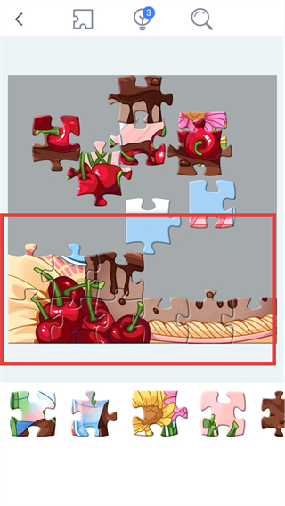 3、进入拼图关卡后,拖动下方的拼图块到上方区域,开始按素材的图案拼接碎片吧。