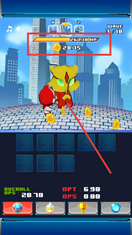 4、技能升级系统利用获得的金币强化奥特曼能力,不断提升攻击力与技能效果,应对越来越强大的怪兽敌人。
