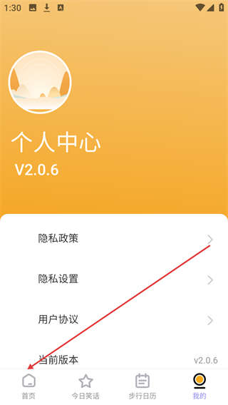 1、在星辰计步界面点击底部【首页】选项,回到主功能展示页面。