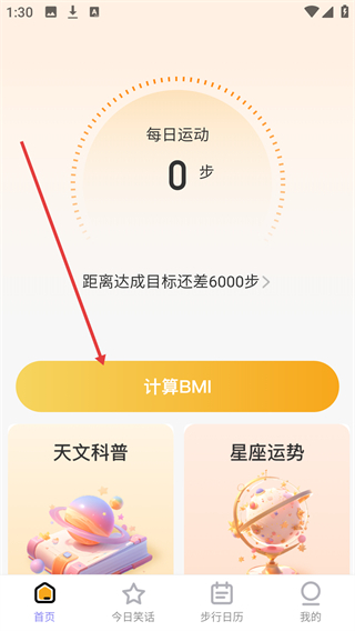 2、在首页找到【计算BMI】按钮并点击,进入BMI计算器的信息填写界面。
