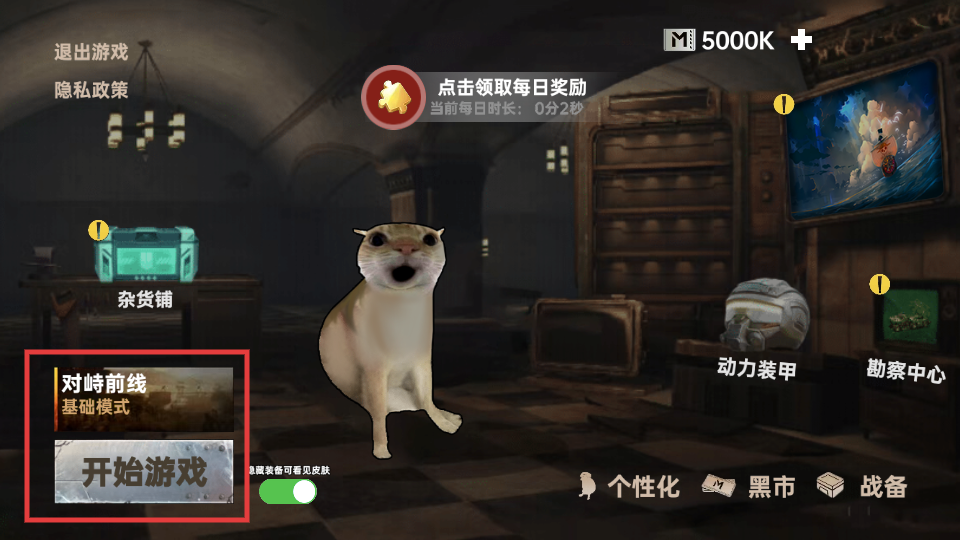 1、主界面中找到【对峙前线-基础模式】的【开始游戏】按钮,点击可进入基础模式对局。