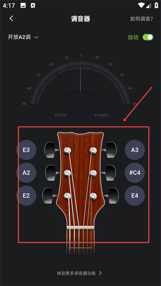 还为你提供了吉他调音功能,你可以通过软件进行吉他调音操作