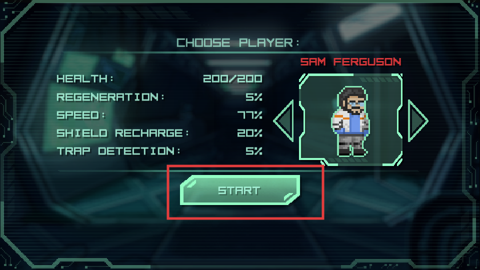 1、在角色选择界面,确认【SAM-FERGUSON】属性后,点击【START】开启游戏。