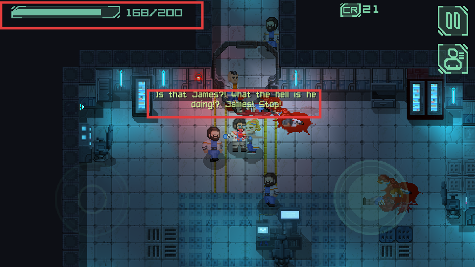 4、关注左上角血量【168/200】,依对话【Is-that-James?-What-the-hell-is-he-doing?-James!-Stop!】推进剧情,应对减血。