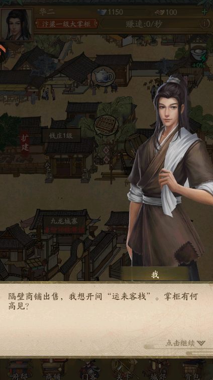 1、点击商铺后会进入一段剧情,带来古风市井的氛围,并推动整体进程。
