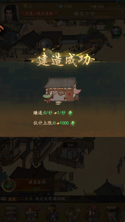 1、采用古风市井背景,营造真实的商业氛围,通过商铺、客栈等经营要素组合,展现完整的成长体验。