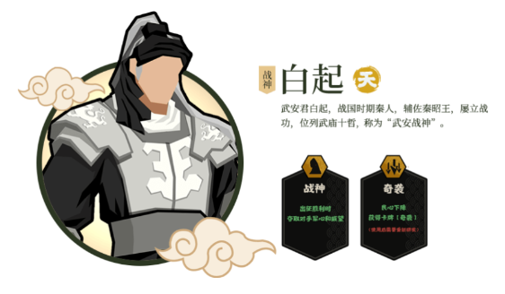 背景介绍:白起(?—公元前257年),男,秦国白氏,名起,郿邑(今陕西眉县常兴镇白家村)人。 战国时期名将,杰出的军事家,“兵家”代表人物。