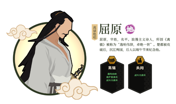 背景介绍:屈原(约公元前340—公元前278年),芈姓,屈氏,名平,字原,又自云名正则,字灵均,出生于楚国丹阳秭归(今湖北宜昌),战国时期楚国诗人、政治家。楚武王熊通之子屈瑕的后代。少年时受过良好的教育,博闻强识,志向远大。早年受楚怀王信任,任左徒、三闾大夫,兼管内政外交大事。提倡“美政”,主张对内举贤任能,修明法度,对外力主联齐抗秦。因遭贵族排挤诽谤,被先后流放至汉北和沅湘流域。楚国郢都被秦军攻破后,自沉于汨罗江,以身殉楚国。
