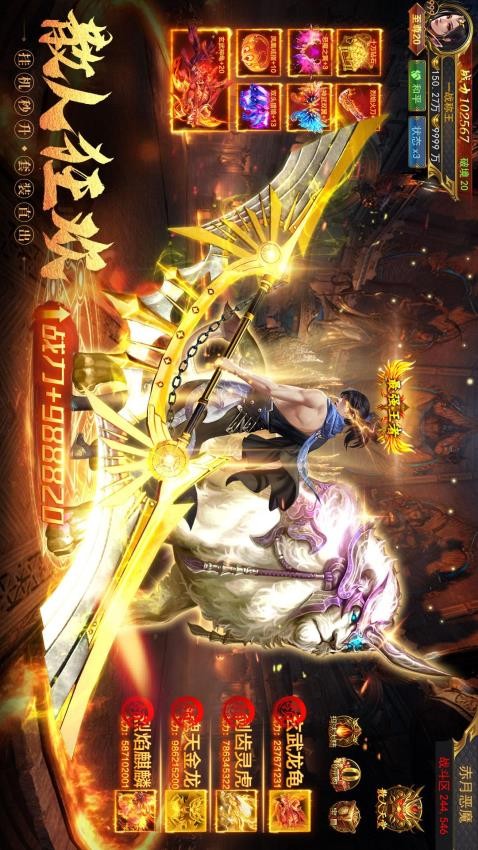 新服日日开,神装刀刀爆,越级打宝光柱满屏!公会开荒,跨服热血争霸,全新副本无限制野外pk,万人同屏狂暴刷boss!