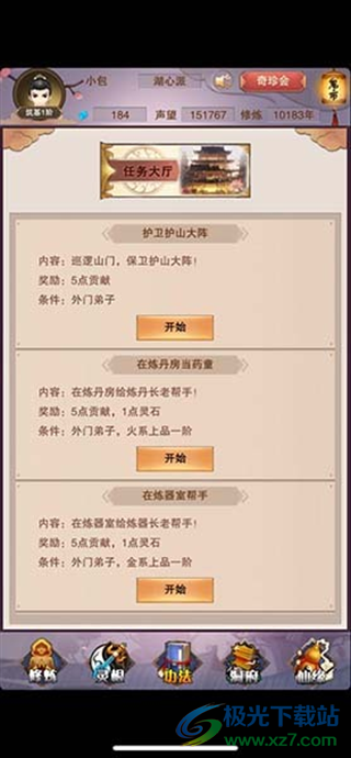 在灵根达到上品之后,可在门派内挂机门派任务,每10分钟会获取一次奖励。