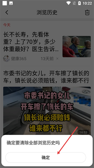4、在弹出的确认清除弹窗中,点击“确定”按钮,完成全部浏览历史的清除操作。