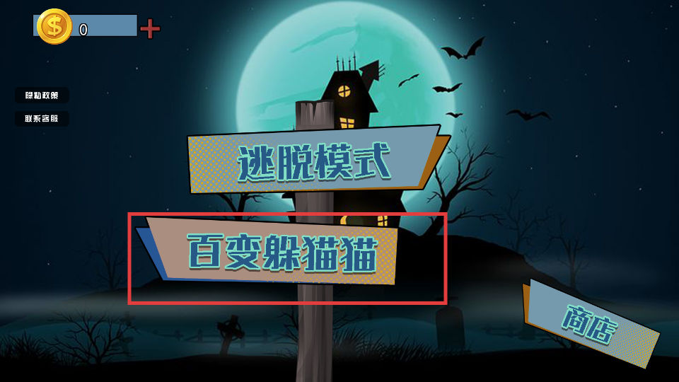 1、进入游戏后,选择【百变躲猫猫】模式,开启刺激的密室躲猫猫体验,探索恐怖场景。
