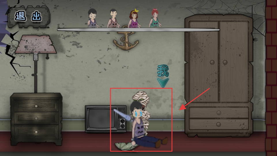3、若被屠夫发现(如图中角色被抓),则游戏失败,需更谨慎选择藏身位置,提升隐蔽性。