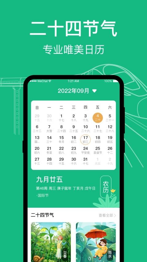 将日历界面打开查看日历信息对个人的旅游行程进行安排