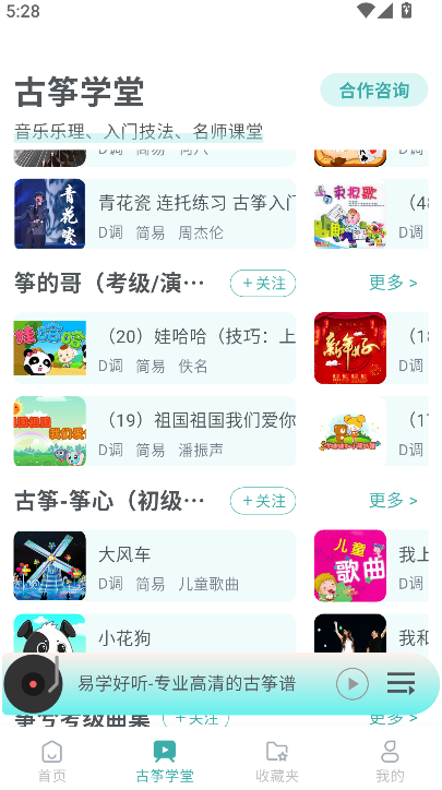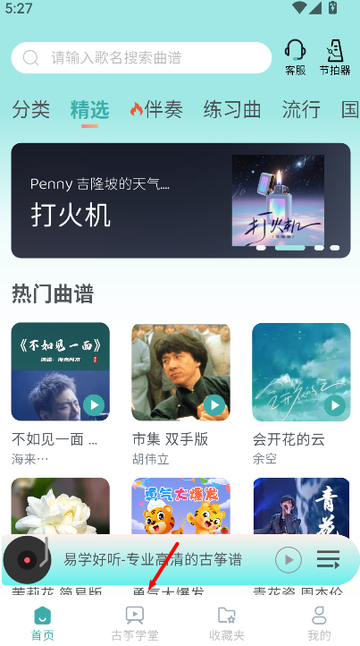 1、进入古筝学堂,打开软件后可看到各类课程分类和推荐内容,便于选择学习方向。