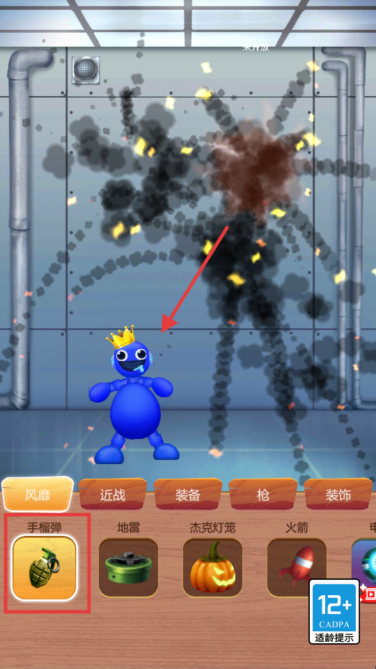 1、使用【手榴弹】道具,点击触发爆炸击中目标,借爆炸特效释放压力,可调整使用角度优化效果。