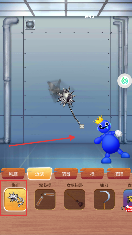 2、选择【梅斯】近战武器,操控其挥舞打击目标,借链条式挥舞增强发泄时的互动解压感。