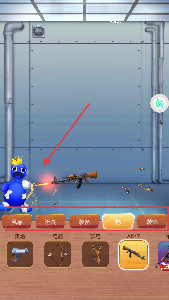 3、切换【枪】类道具,选中【AK47】射击目标,借子弹打击体验解压,注意把控弹药消耗节奏。
