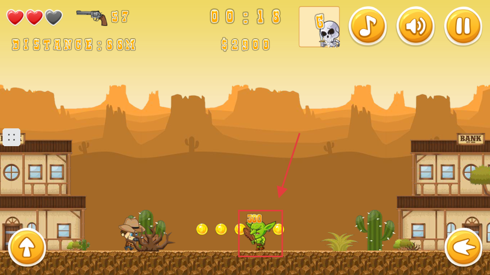 3、遇到头顶标【300】的绿色怪物,瞄准射击将其击杀,可获得对应金钱,把控时机。