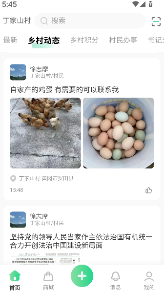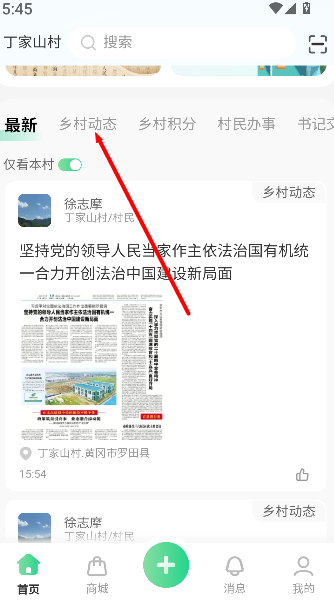 1、进入首页后点击“乡村动态”,进入村务与资讯内容列表。