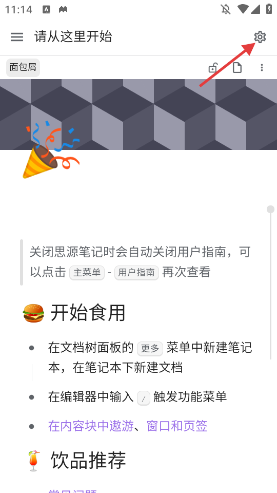 1、点击界面右上角的设置图标,进入功能菜单页面。