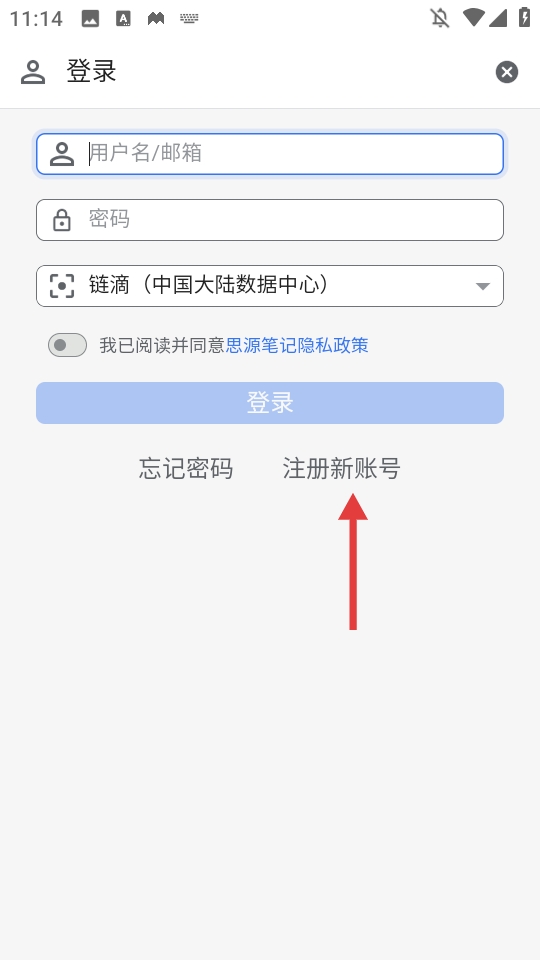 3、在登录界面,点击【注册新账号】,跳转到注册页面。