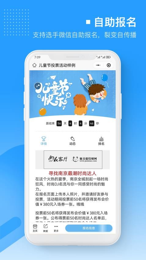 4.参与活动的选手可以在线进行自助报名提交报名信息来参与评选拉票使用。