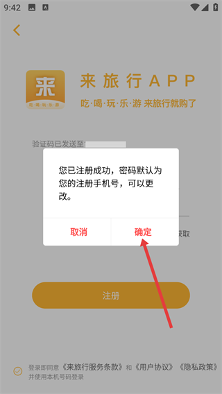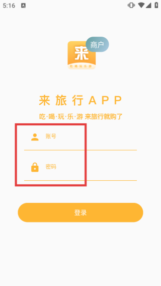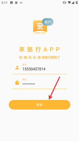 3、点击【登录】,完成来旅行APP商户账号登录操作。
