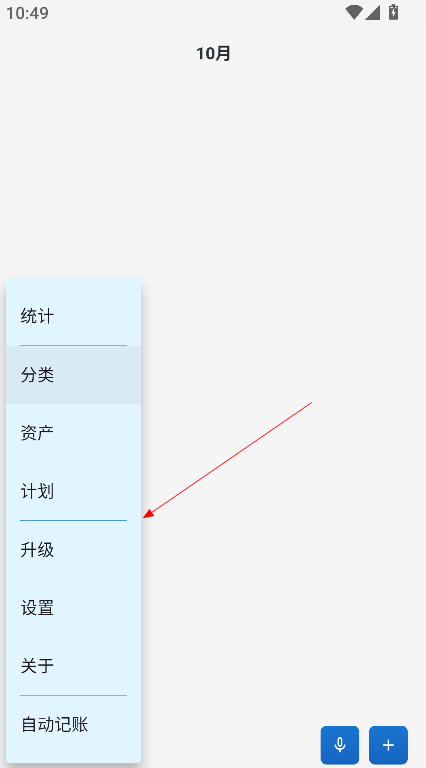 1、进入软件后,点击左下角的三条横线图标,可打开主目录页面,查看账本管理、统计报表及系统设置等功能选项。