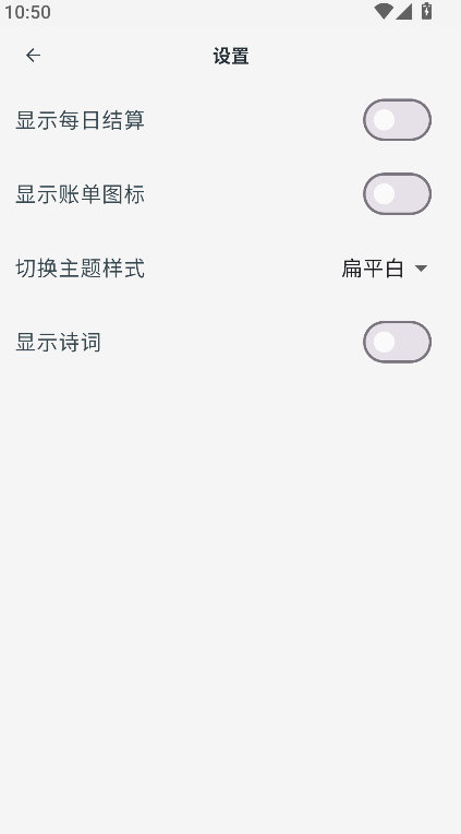 2、在设置页面中,可根据个人需求开启每日结算显示功能,并自定义账单图标样式,调整账目展示方式。