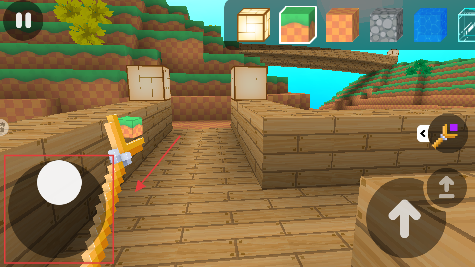 2、利用左下角【移动摇杆】控制角色移动,在场景中探索,收集球形建筑材料。