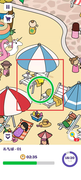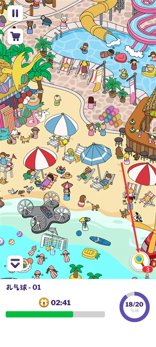 2、找到场景中的气球,点击它完成该气球的收集计数。
