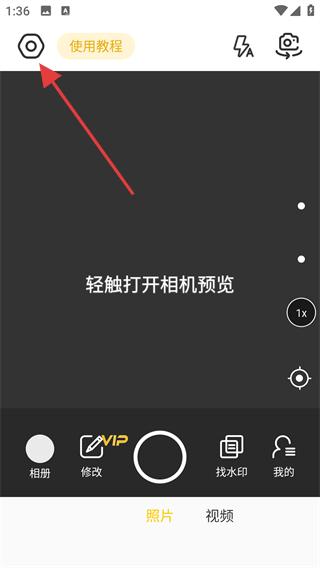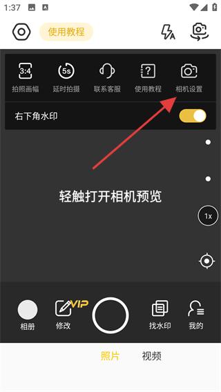 1、进入水印相机界面,点击左上角设置图标,打开功能选项栏。