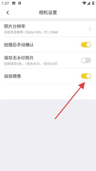 4、点击【自拍镜像】对应的开关按钮,将其切换为开启状态,即可启用镜像模式。