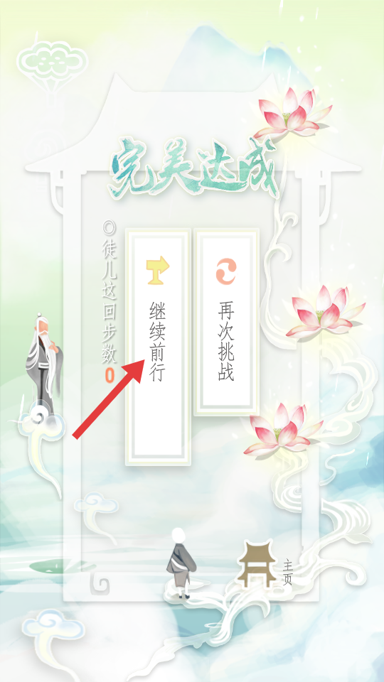 4、关卡完美达成后,点击【继续前行】按钮,继续游戏。