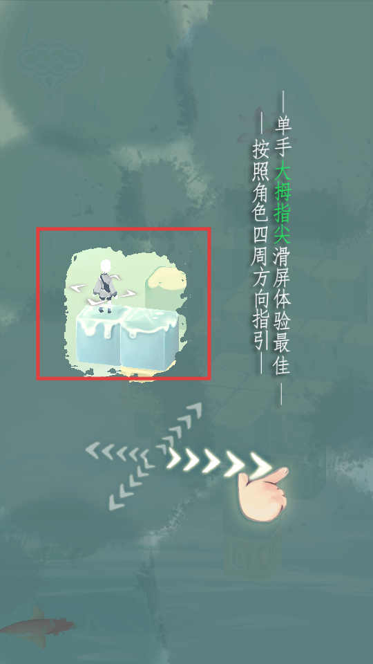 2、按照角色四周方向指引,用单手指尖滑屏,操控角色在方块上移动。