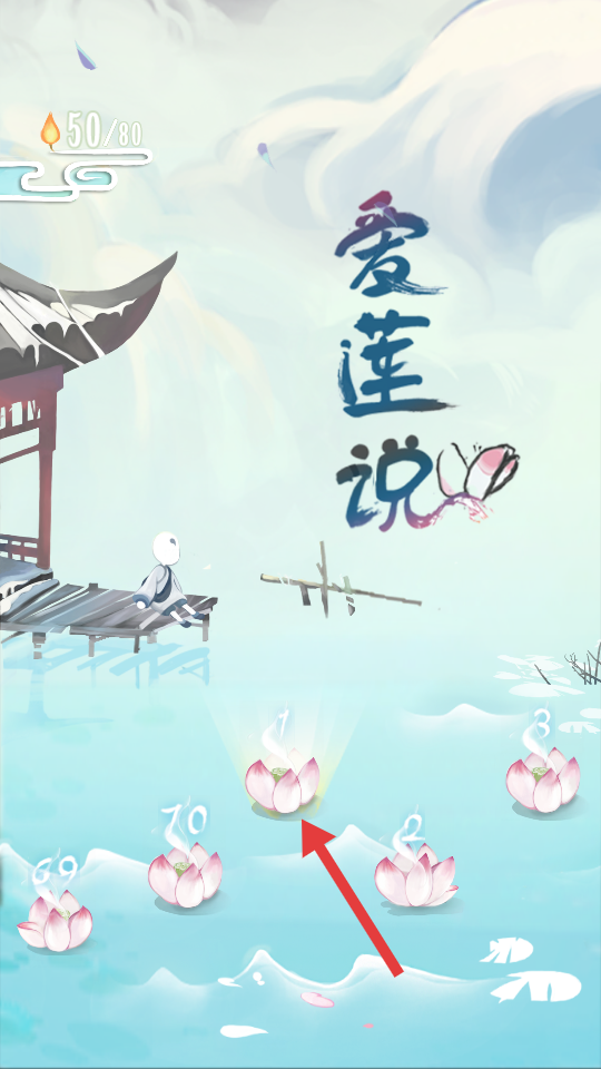 1、在游戏初始界面点击标有【1】的莲花,进入关卡。