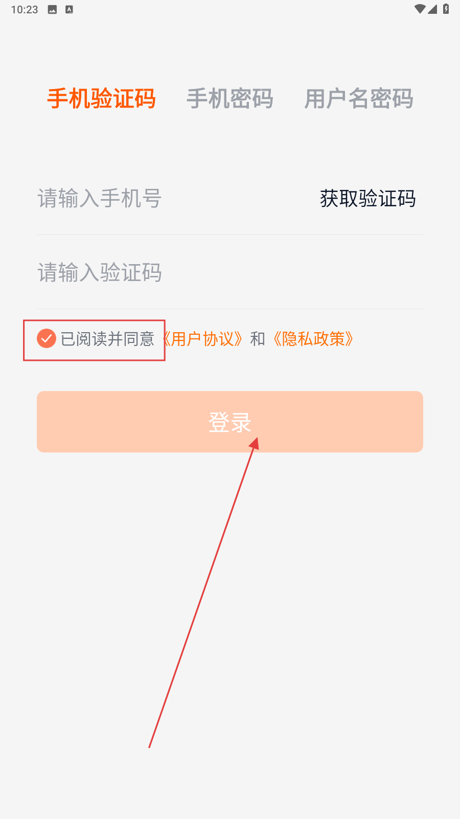 3、填入验证码,勾选同意协议后,点击【登录】完成操作。