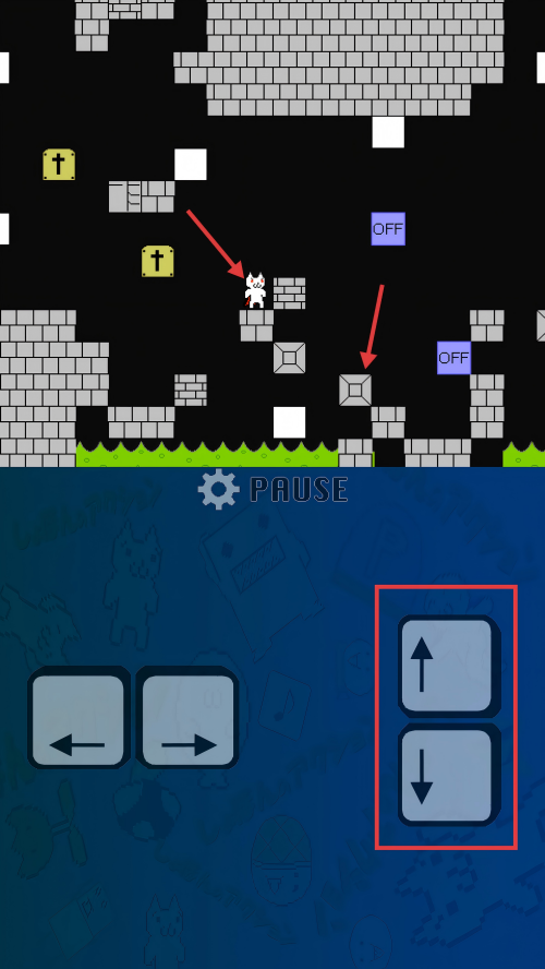 4、遇到方块等场景元素时,用上下方向键操作角色,继续前进。