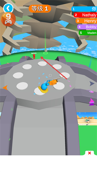 2、操控戴黄色帽子的蓝色小人,对抗对手。