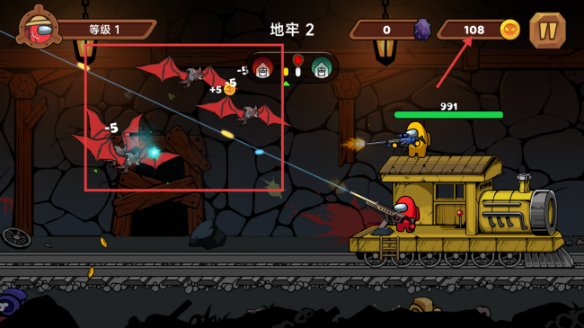 3、在后续地牢关卡,攻击蝙蝠等敌人,收集金币。