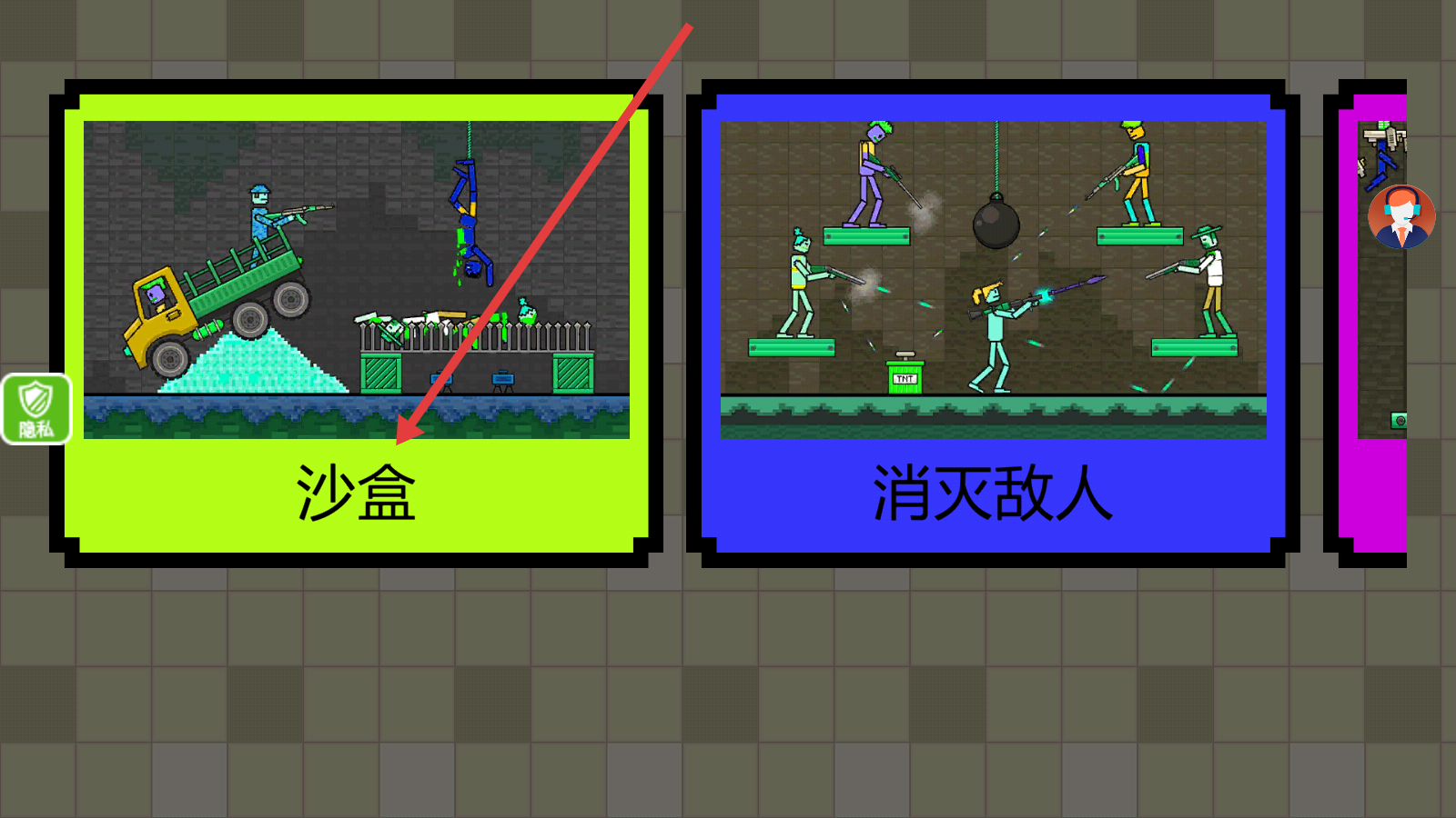 1、点击【沙盒】模式,进入沙盒游戏场景。