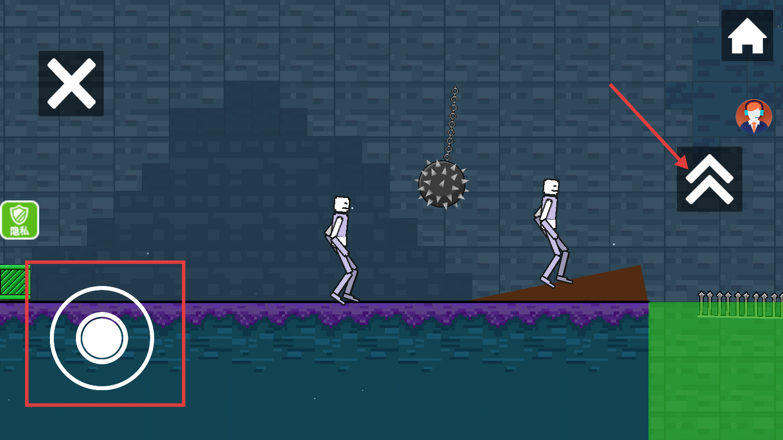 4、使用左侧虚拟摇杆和右侧方向按钮,操控角色移动。