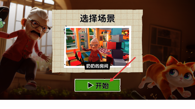 1、选择【奶奶的房间】场景,点击【开始】进入游戏。