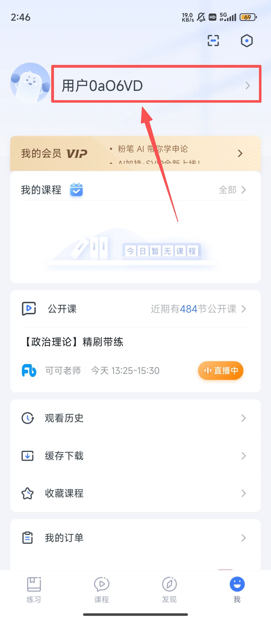 3、在个人页面中,点击显示的【用户】区域,进入个人信息界面。