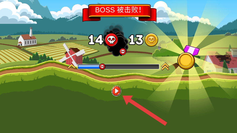 4、成功击败BOSS坦克,看到【BOSS被击败!】提示后,点击箭头按钮,继续后续关卡。