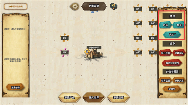 4、点击建造【金矿场】,保障家族资源稳定产出。